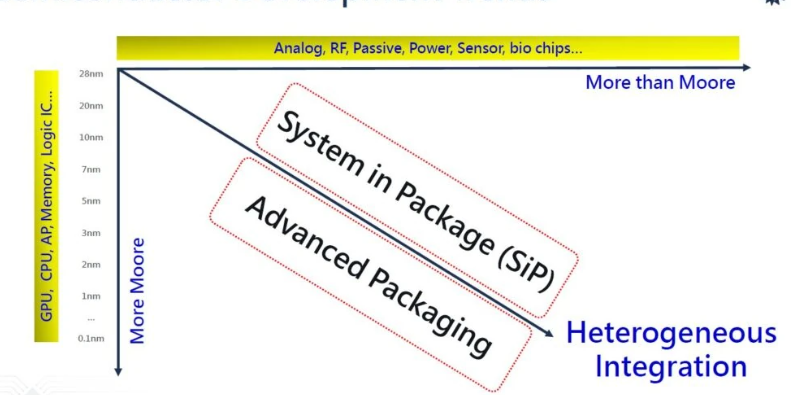 ويحدد التقرير المنصة المستقبلية: جهاز متطور + تغليف متطور + تكامل غير متجانس + شرائح + إدخال/إخراج بصري + مواد جديدة